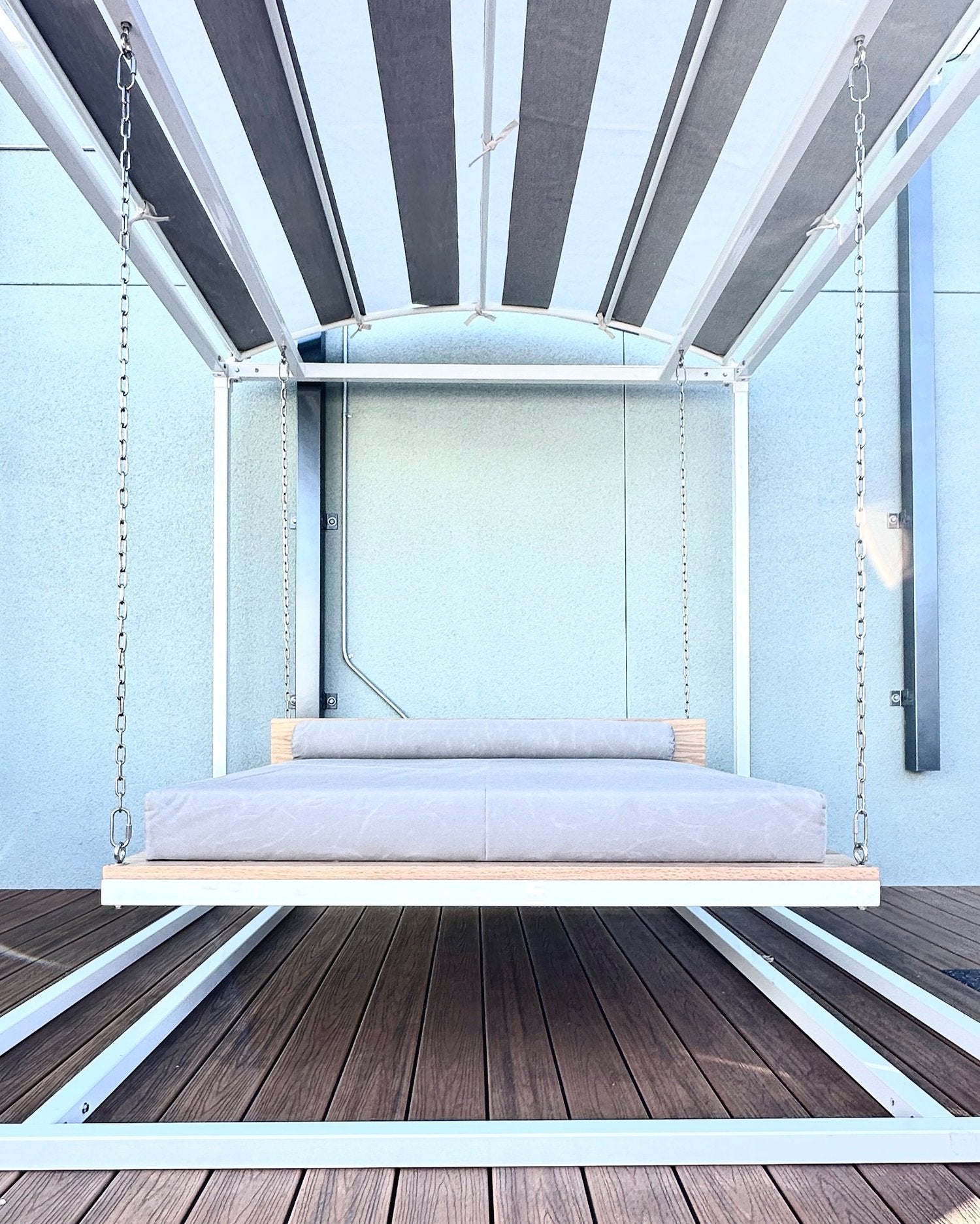 The Double SwingBed: It's the best of both worlds—a cozy daybed with a relaxing swing! Perfect for indoor or outdoor lounging, it combines comfort and motion for ultimate relaxation. Experience the joy of swinging in style with the SwingBed!